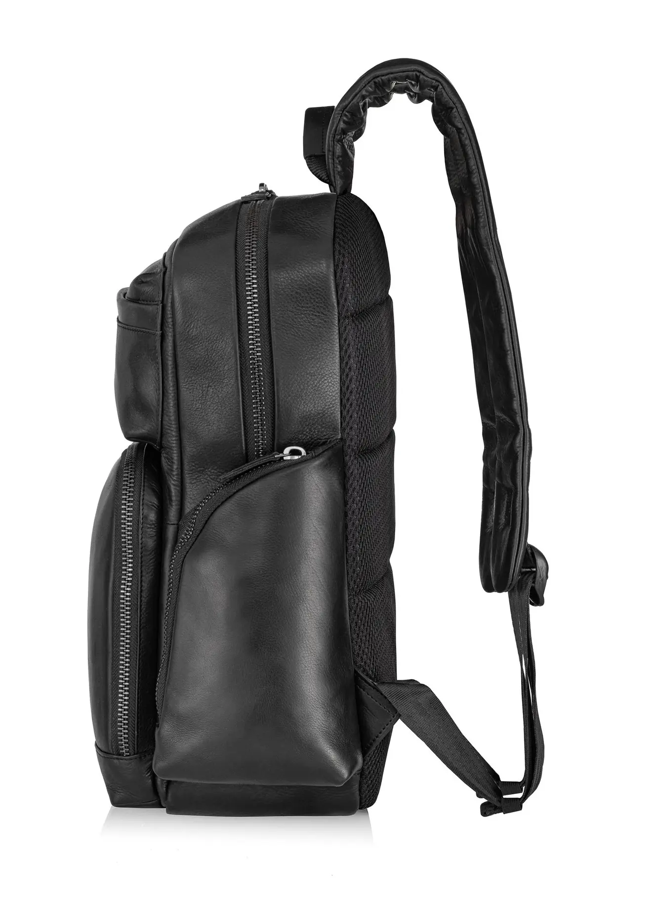 Ten plecak męski wykonany ze skóry naturalnej jest nie tylko elegancki, ale również niezwykle praktyczny. W czarnym kolorze doskonale sprawdzi się zarówno do casualowych spodni, ale także bardziej eleganckiej koszuli.
