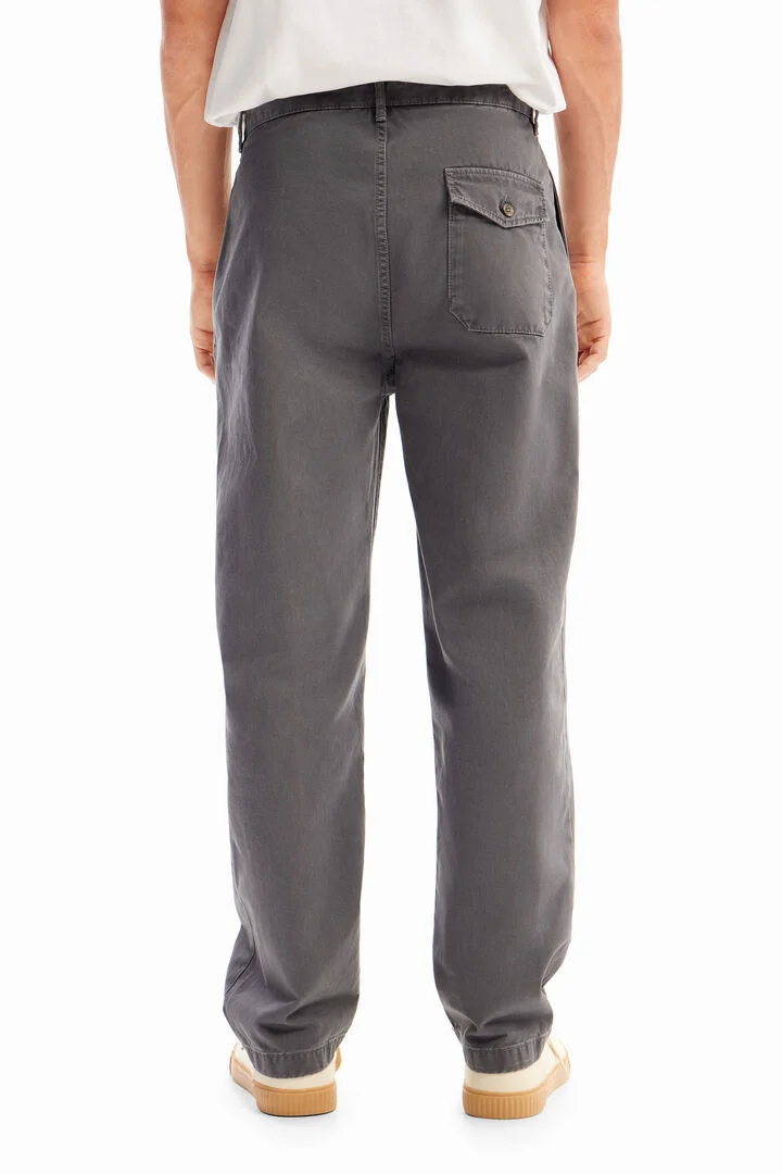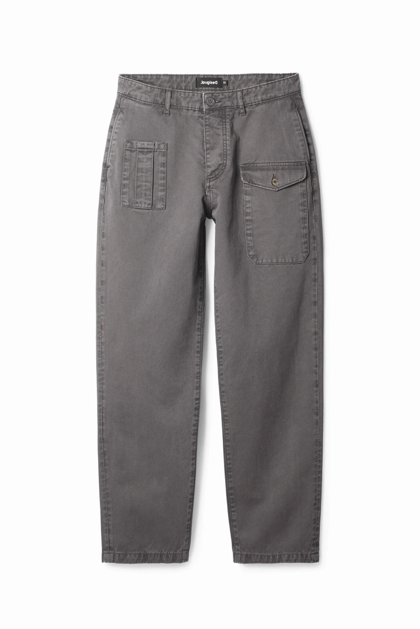 Proste spodnie z serży z efektem sprania i kieszeniami cargo. 100% bawełna.