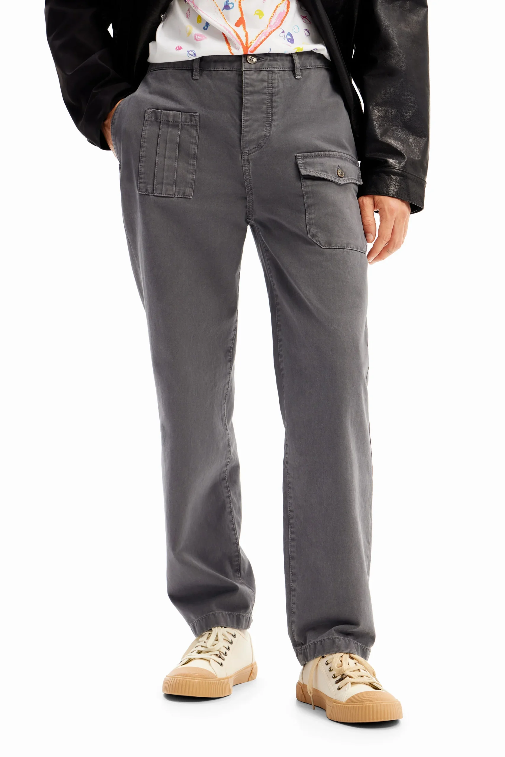 Proste spodnie z serży z efektem sprania i kieszeniami cargo.