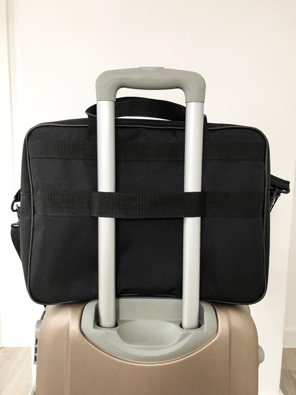 DODATKOWYM ATUTEM  JEST WSZYTY UCHWYT UMOŻLIWIAJĄCY PRZYMOCOWANIE TORBY DO WYSUWANEJ RĄCZKI OD WALIZKI NA KÓŁKACH KTÓRA JEST NADAWANA  JAKO BAGAŻ REJESTROWANY.